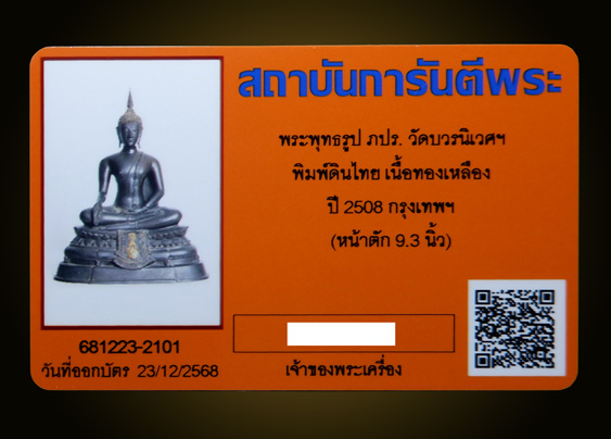 พระบูชา (ภปร.) รุ่นแรกวัดบวร หน้าตัก 9นิ้ว! (ดินไทย) ปี2508 พิมพ์นิยม ดินไทย แขนต่อ ใต้ฐานมีลวดขึ้นหุ่นพระ สุดยอดหายาก! + บัตรรับรอง G-PRA