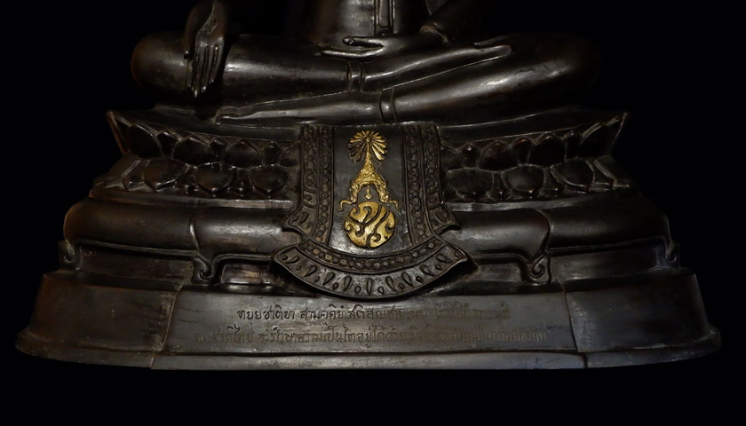 ส่วนฐานด้านหลังมีจารึกว่า "เสด็จพระราชดำเนินในพิธีหล่อ ณ วัดบวรนิเวศวิหาร เมื่อวันที่ ๒๙ สิงหาคม พ.ศ. ๒๕๐๘"