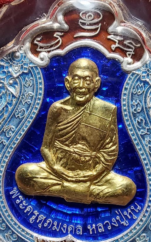 เหรียญเสมา หลวงพ่อหุน วัดบางผึ้ง เงินลงยาหน้าทองคำแท้ ปี 2554 เลข ๔๙ เลี่ยมพลาสติกรักษาผิว