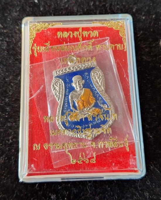 วัดใจ หลวงปู่ทวด หลวงปู่ศิลา เมตตาอธิษฐานจิต รุ่นเลื่อนสมณศักดิ์ เหนือดวง เนื้อทองทิพย์ ลงยา No.15 |