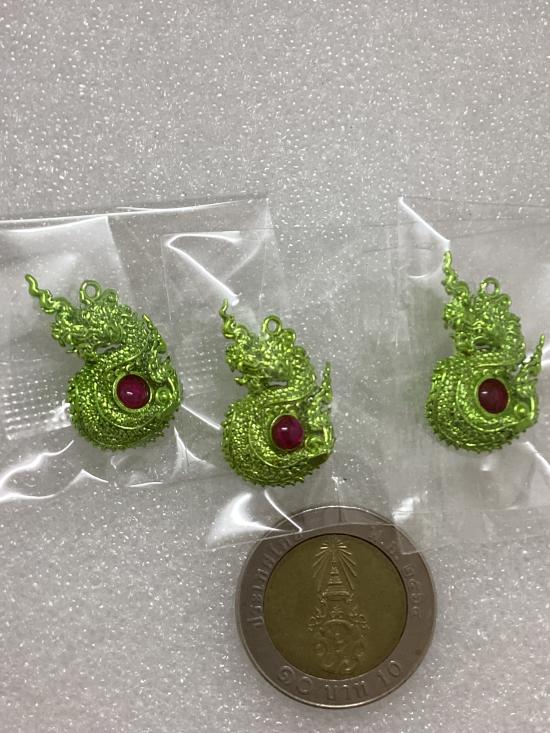 เคาะเดียวแดง 100 ( 3 อัน ) จี้มณีเศรษฐีนาคา วัดไทย จ.หนองคาย เนื้อสัมฤทธิ์ชุบอีโค๊ตเขียว กล่องเดิม |