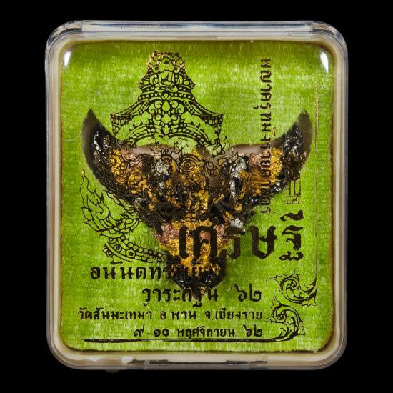 พญาครุฑมังรายศาสตร์ " เศรษฐีอนันตทรัพย์ " ครูบาวิรุต ญาณสํวโร วัดสันมะเหม้า อ.พาน จ.เชียงราย พิมพ์เล็ก เนื้อมหาชนวน 3 กษัตริย์ หมายเลข ๗๑๕ พร้อมกล่องเดิม |