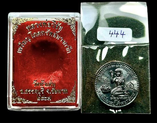 เหรียญโภคทรัพย์ "นางกวักหลังหนุมาน" หลวงพ่อวิชัย วัดหัวเด่น "เนื้อทองแดงรมดำ" เลขตองสุดสวย 444 สวยกริ๊บ |