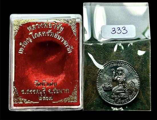 เหรียญโภคทรัพย์ "นางกวักหลังหนุมาน" หลวงพ่อวิชัย วัดหัวเด่น "เนื้อทองแดงรมดำ" เลขตองสุดสวย 333 สวยกริ๊บ |