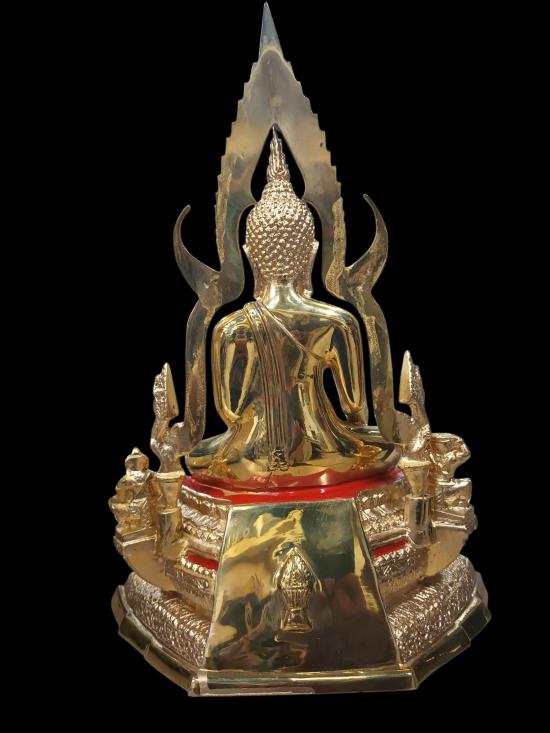 พระพุทธชินราช ฐานหน้าอกเลาเนื้อทองเหลืองขัดมัน หน้าตัก 5 นิ้ว ขนาดความสูงรวมซุ้ม 12 นิ้ว