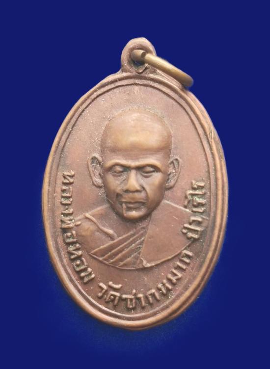 เหรียญหลวงพ่อหอม วัดชากหมาก บ้านฉาง จ.ระยอง รุ่นแรก ๒๔๙๘ บล็อกหน้าโหนก พิมพ์นิยม 4 ชาย เนื้อทองแดง |