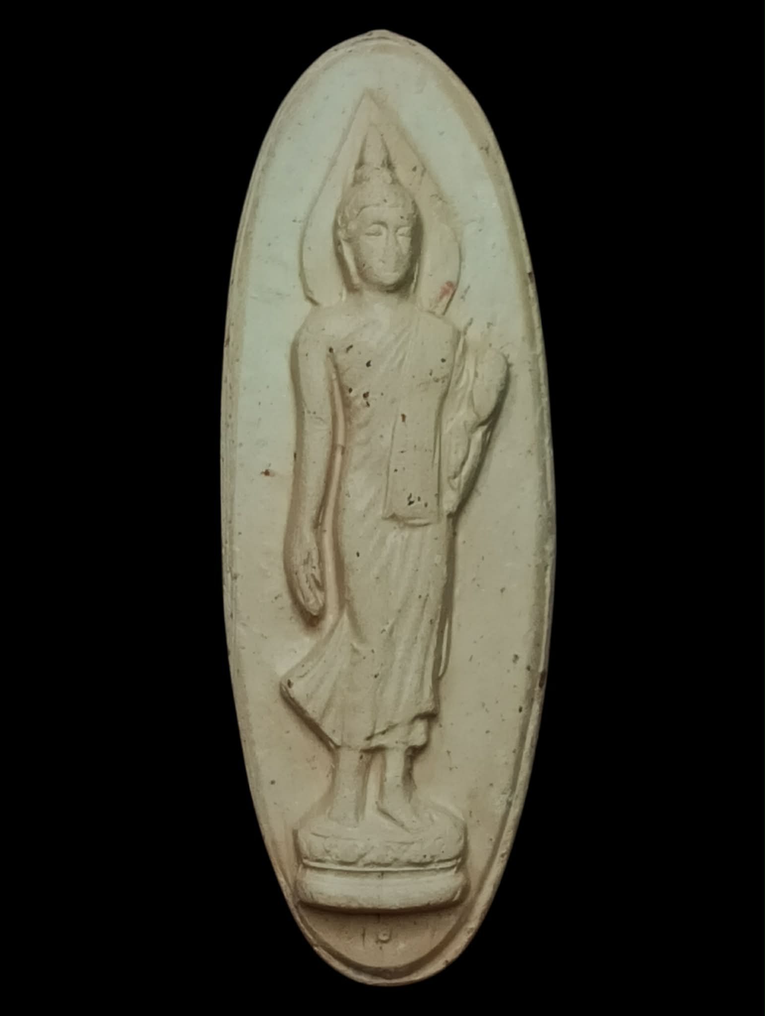 พระลีลา 25 ศตวรรษ พุทธมณฑล นครปฐม ปี 2500 เนื้อดิน สึขาว-แดง ทูโทน พบเจอน้อย มีหน้าตา สวยเดิมครับ |