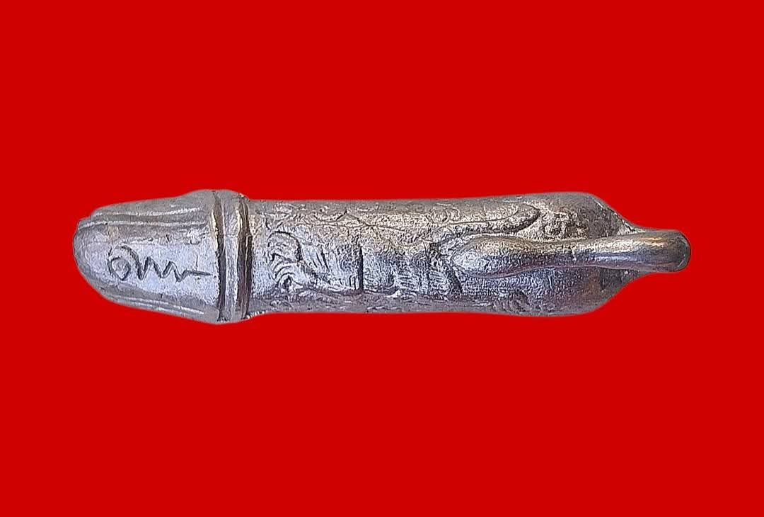 ปลัดขิกสายฟ้าฟาด เนื้อปีกเครื่องบิน ปี38 ตอกโค๊ต 2 ข้าง หลวงพ่อไสว วัดปรีดาราม ขนาดยาวประมาณ 5 ซม.