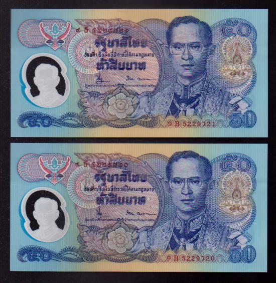 ## ธนบัตร 50 บาท ## กาญจนา ## เรียงเลข 2 ฉบับ ## ไม่ผ่านการใช้