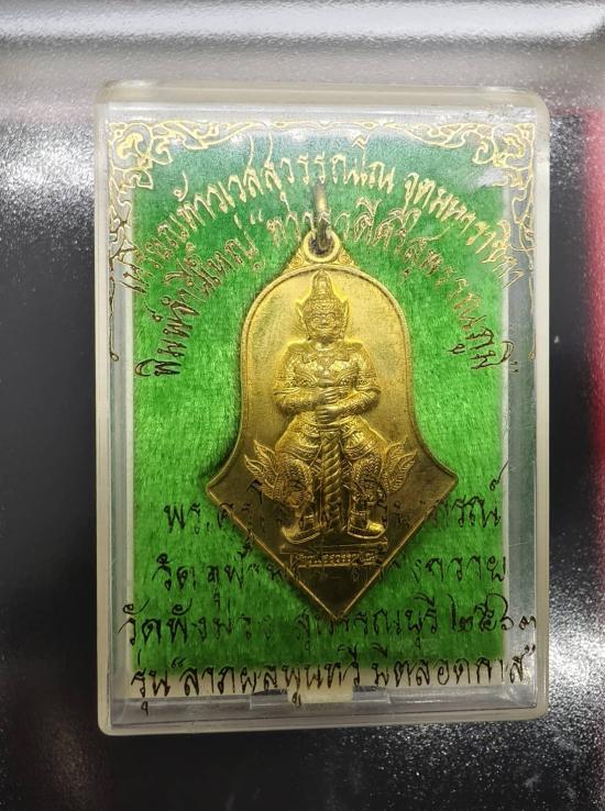 เหรียญท้าวเวสสุวรรณ หลวงพ่ออิฐ วัดจุฬามณี รุ่นวัดพังม่วง พิมพ์จำปีใหญ่ กล่องเดิม พร้อมบัตรรับรอง |