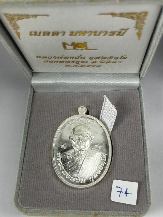 เหรียญ เมตตามหาบารมี หลวงพ่อหวั่น วัดคลองคูณ ปี2558 เนื้อเงิน(ห่มเฉียง) เบอร์ 74 พร้อมกล่องครับ (น้ำหนักเหรียญ 17.54 กรัม)