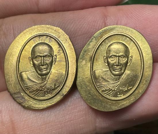 เหรียญเม็ดแตง " แซยิด 88 ไม่ตัดปีก " หลวงปู่แผ้ว วัดประชาราฎร์บำรุง ( วัดรางหมัน ) จ.นครปฐม ปี2553 เนื้อทองฝาบาตรสวยๆ 2 องค์คับ