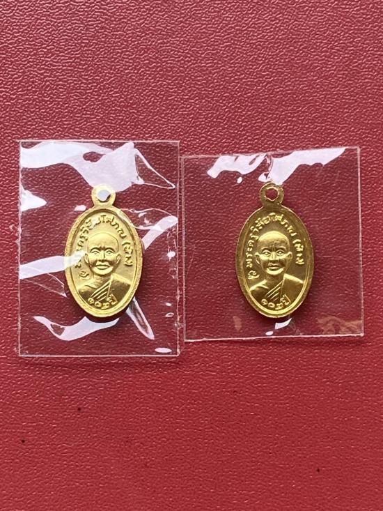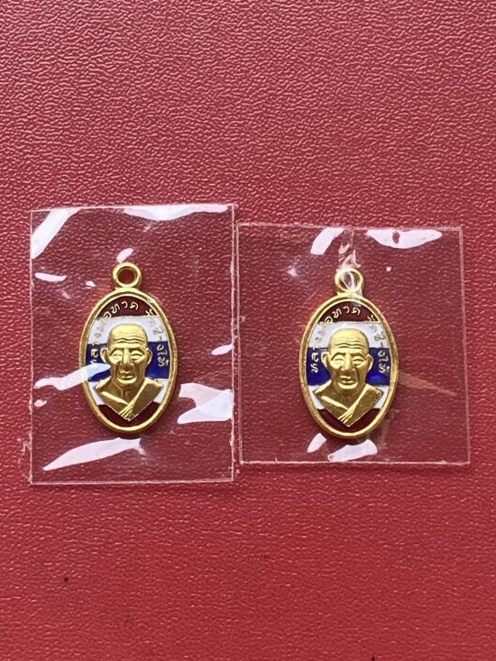 เคาะเดียวแดง เม็ดแตง 2องค์หลวงปู่ทวด รุ่น102ปีอาจารย์ทิม เนื้อชุบทองลงยาสีธงชาติ