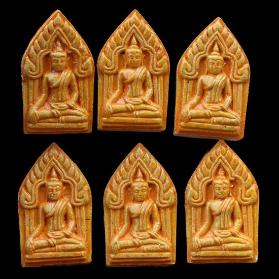 ชุด 6 องค์ ...พ่อแผนเทพรัญจวน (เคลือบว่านดอกไม้ทอง) ปี 2558 หลวงปู่ชั้น วัดดอนสนวน จ.ชัยนาท พร้อมซองใบฝอยเดิมจากวัด สภาพพระตามรูปที่ลงทุกประการ (ขนาดประมาณ 3.7 x 2.1 ซม.)