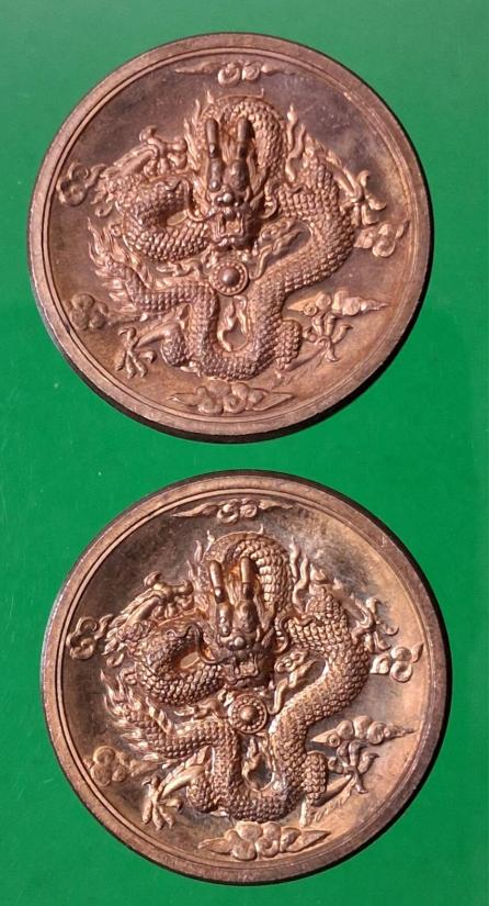เหรียญพญามังกรทองจักรพรรดิ์ วัดไตรมิตร เนื้อทองแดง ปี 2555 จำนวน2เหรียญครับ |