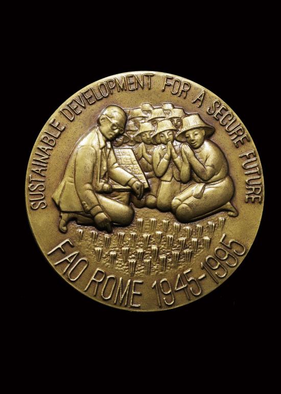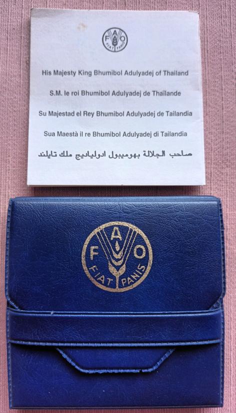 รายละเอียด เหรียญ Agricola F.A.O ในหลวงร.9 ที่ระลึกสดุดีพระเกียรติคุณ ((( เนื้อบรอนซ์ ขนาด 5 ซม. ))) เก่าเก็บ ไม่ผ่านใช้ เดิมๆ มีซองเดิม+ใบ