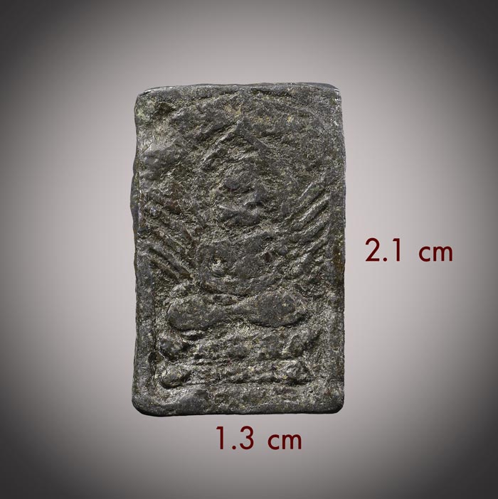 พระหล่อโบราณ สี่เหลี่ยม (ไม่ทราบที่) เนื้อตะกั่วเก่ามีอายุ ขนาดพระ ฐาน 1.3cm สูง 2.1 cm |