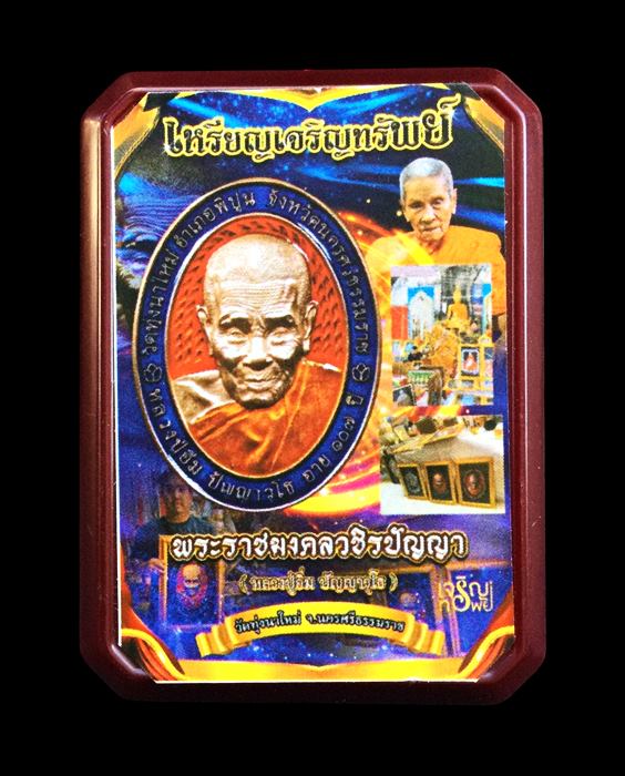 +!!เคาะเดียวllดง ตลอดสาย!!+ เหรียญ เจริญทรัพย์ หลวงปู่อิ่ม วัดทุ่งนาใหม่ จ.นครศรีธรรมราช (เนื้อทองทิพย์ซาตินลงยาไล่เฉดสี ขอบน้ำเงิน หน้ากากเงิน(เพ้นท์) ฝังพลอยสังฆาฏิเต็ม เลขสวย 77) พร้อมกล่องครับ