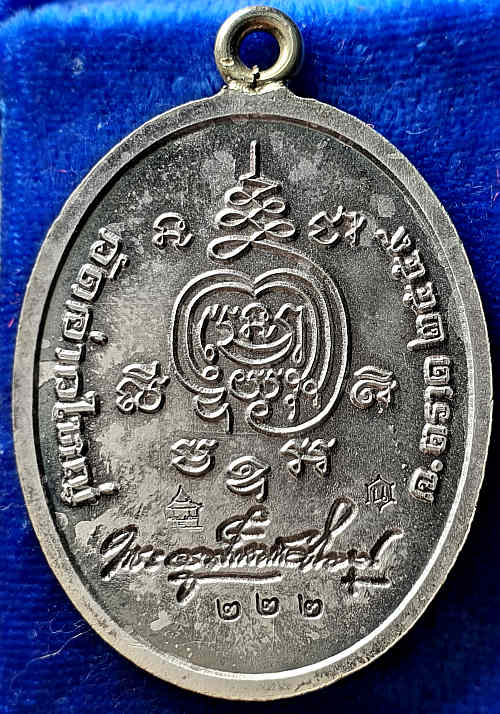 หมายเลขสวยตอง ๒๒๒ เนื้อเงินลงยา เหรียญห่วงเชื่อมรุ่นแรก หลวงพ่อนัส วัดอ่าวใหญ่ ตราด ปี 58 พร้อมกล่องกำมะหยี่เดิม