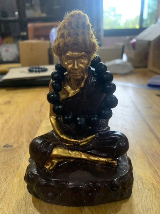 พระบูชาหลวงปู่หมุน ฐิตสีโล วัดบ้านจาน เนื้อแร่เหล็กน้ำพี้ผสมเรชิ่นปัดทอง ขนาด 3 นิ้ว ((ไต้ฐานอุดพระผงดวงรวยชนะจน ออกวัดบ้านจาน))