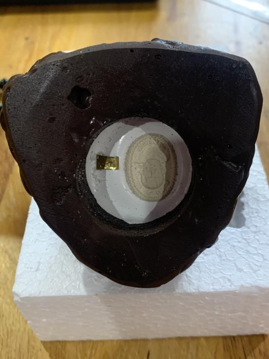พระบูชา หลวงปู่หมุน วัดบ้านจาน ศรีสะเกษ ปี65 ฐานสามเหลี่ยม (งานวัดจัดสร้างเองในนามวัดบ้านจาน) เนื้อแร่เหล็กน้ำพี้ผสมมวลสารเก่าผสมเรซิ่นปัดทอง ฐาน 3 นิ้ว สูง 4 นิ้ว ไต้ฐานอุดพระผงดวงรวยชนะจน เลขสวย 89 |