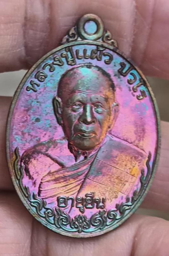 เหรียญรุ่นแจกทานบารมีอายุ99หลวงปู่แผ้วม่วงๆพร้อมกล่อง