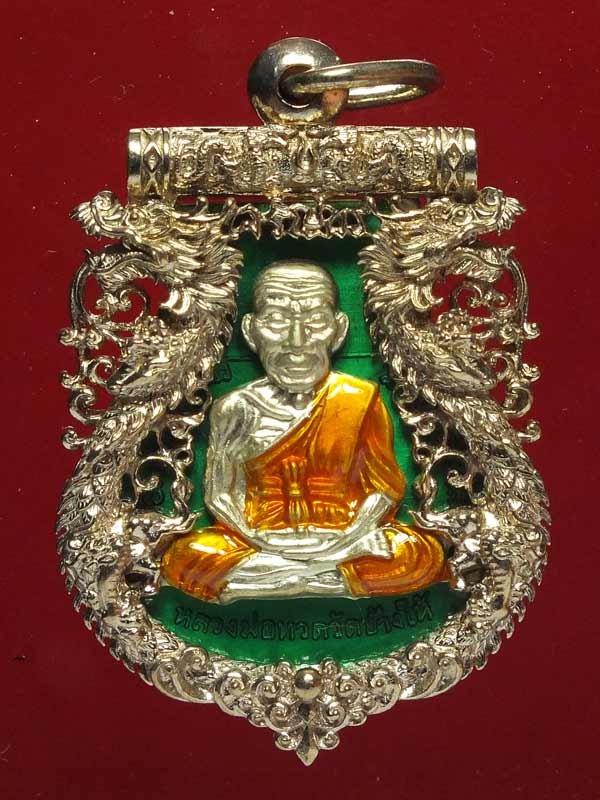 "วัดใจ" เหรียญเสมาฉลุยกองค์ หลวงปู่ทวด เจริญพร เลื่อนสมณศักดิ์ วัดพะโคะ เนื้ออัลปาก้าลงยาสีเขียว หมายเลข 110 สภาพสวยเดิมเลี่ยมกันน้ำ พร้อมกล่องเดิม