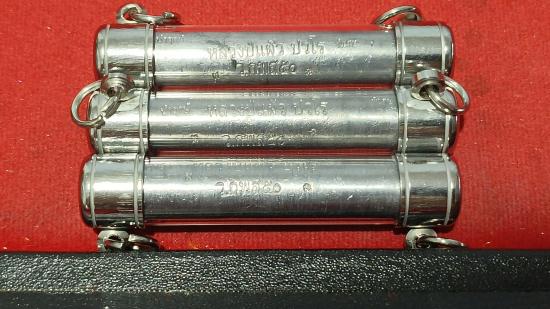 แบ่งปันตะกรุด แคล้วคลาด ปลอดภัย มหาอุด หลวงปู่แผ้ว ปวโร เนื้อตะกั่วนำฤกษ์ 2 นิ้ว จารมือ ตอกโค๊ต ชุด3ดอก เลี่ยมใส่หลอด พร้อมใช้ |