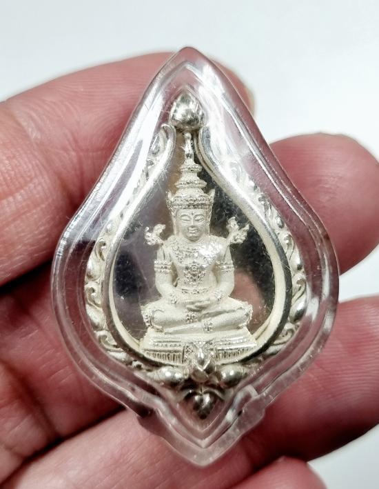 ชื่อพระเครื่อง เหรียญพระแก้วมรกต เหรียญทรงดอกบัว หัลง ภปร. ปี 2547 เนื้อเงินขัดเงา รพ. ภูมิพล จัดสร้าง พร้อมเลี่ยม