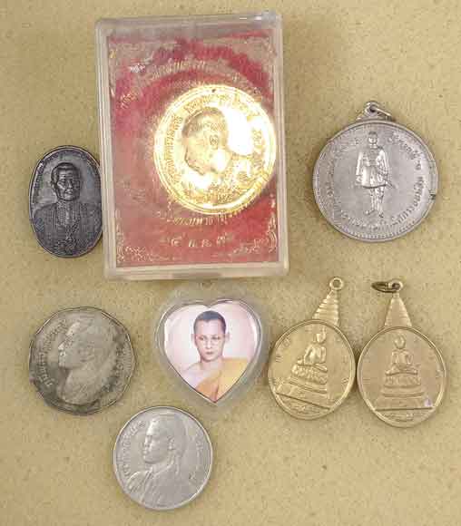 เหรียญร.1 + เหรียญร.5 + เหรียญร.6 + เหรียญพระชัยหลังช้าง 2 เหรียญ + เหรียญ ร.9 +ล็อกเก็ต ร.9 + เหรียญ พระเทพ