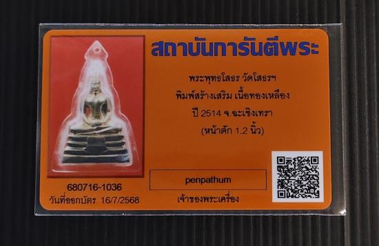 หลวงพ่อโสธรตั้งหน้ารถ บล็อก09 ออกปี14 สภาพสวย+บัตรจี