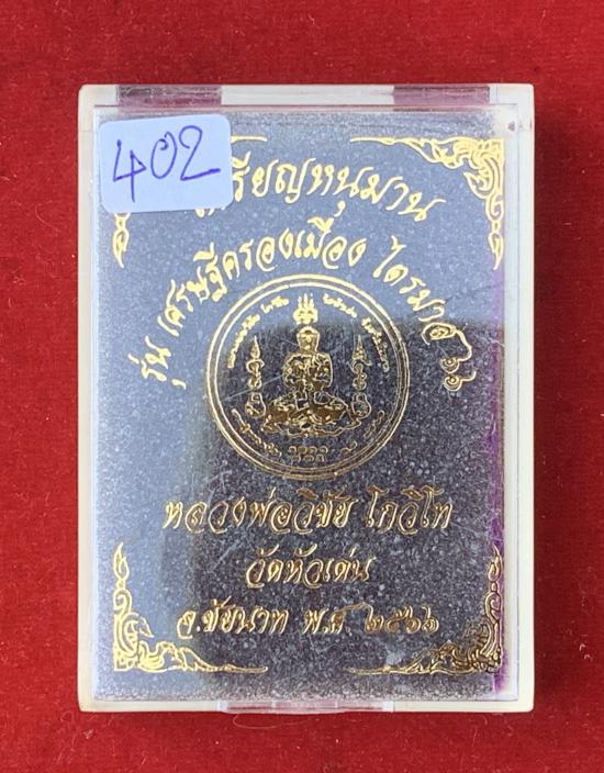 เหรียญหนุมาน รุ่นเศรษฐีครองเมือง ไตรมาส ๖๖ หลวงพ่อวิชัย โกวิโท วัดหัวเด่น จ.ชัยนาท เนื้ออัลปาก้า ลงยาแดง หมายเลข 402 |