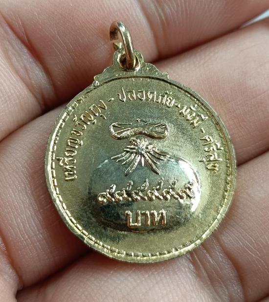 เหรียญขวัญถุง - ปลอดภัย - มั่งมี - ศรีสุข หลวงพ่อผาง วัดอุดมคงคาคีรีเขต จ.ขอนแก่น กะไหล่ทอง ปี 2518 |