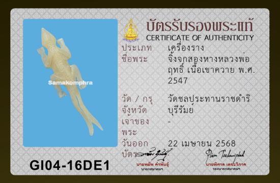 จิ้งจกสองหางหลวงพ่อฤทธิ์ วัดชลประทานราชดำริ เนื้อเขาควาย ปี 2547 พร้อมบัตรรับรองสมาคม