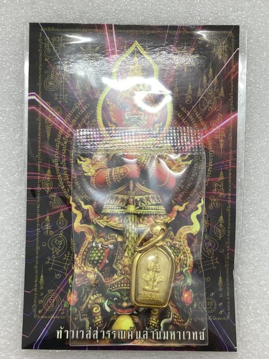 เคาะเดียวแดง 100 เหรียญปรกใบมะขาม ท้าวเวสสุวรรณ พันล้านมหาเวทย์ วัดสันมะเหม้า เชียงราย สูง 1.5 ซ.ม. |
