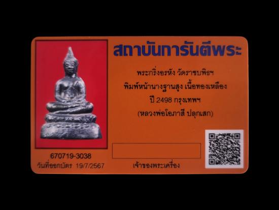 พระกริ่งอรหัง (พิมพ์หน้านาง) หลวงพ่อโอภาสี 2498 พร้อมบัตรรับรองจีพระบรรยายตามภาพ