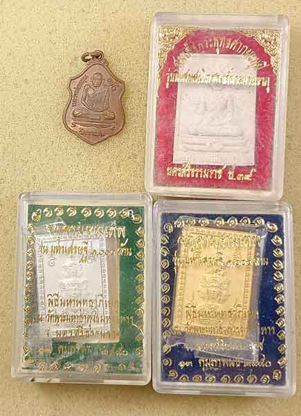 เหรียญหลวงพ่อหมุน วัดเขาแดงตะวันออก พัทลุง ปี 40 +ผงพระพุทธศากยะมุนี นครศรีธรรมราช ปี 39 +จตุคามรุ่นมหาเศรษฐี 1000ล้านกะไหล่เงิน+กะไหล่ทอง ปี50 นครศรีธรรมราช |