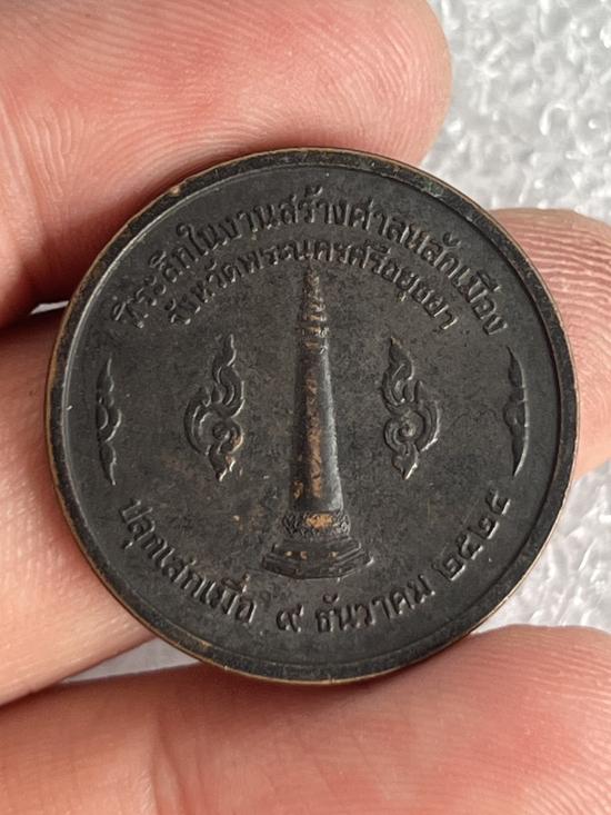 เหรียญสมเด็จพระรามาธิบดี ที่ 1 สมเด็จพระเจ้าอู่ทอง ที่ระลึกในงานสร้างศาลหลักเมือง จ.อยุธยา ปี 2525 ล.ป.ดู่ ปลุกเสก |