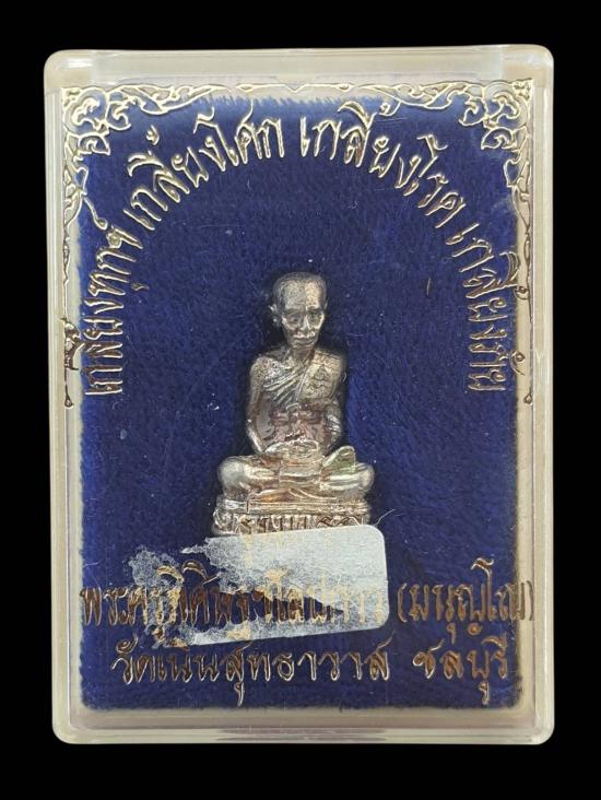 ชื่อพระเครื่อง รูปหล่อรุ่นแรก เนื้อเงิน หลวงพ่อเกลี้ยง วัดเนินสุทธาวาส จ.ชลบุรี พร้อมกล่อง...