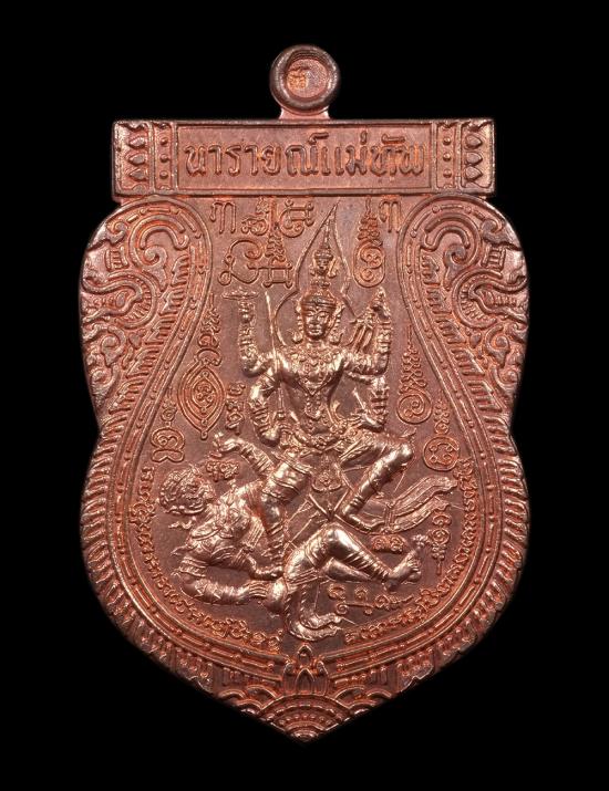 เหรียญนารายณ์แม่ทัพ หลวงพ่อเสาร์ วัดดอนหญ้านาง อยุทธยา เนื้อตะกรุดทองแดงหลอม สร้าง 1469 เหรียญ แดงเคาะแรก |