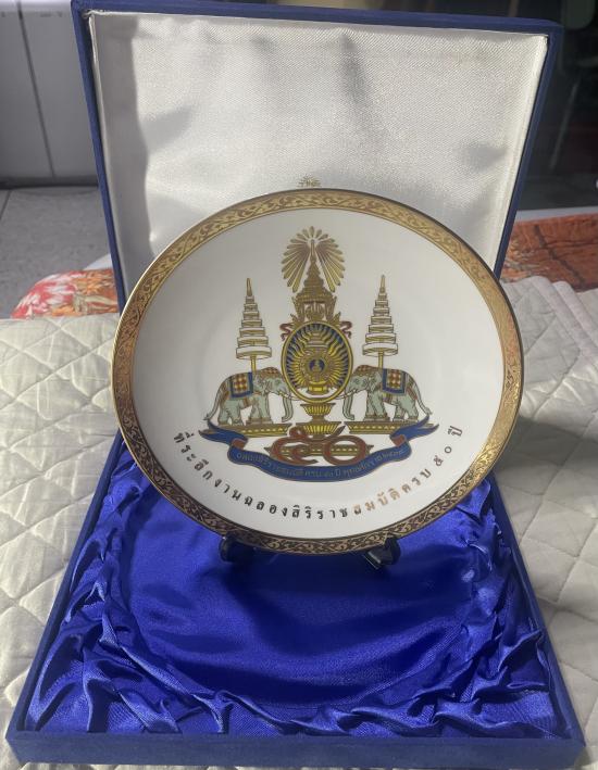 จานโชว์สัญลักษณ์ สิริราชสมบัติครบ 50 ปี ในหลวงรัชกาลที่ 9 ปี พ.ศ. 2539 ช่วงนี้เป็นช่วงเวลาที่เหมาะสมที่จะซื้อสะสมหรือให้ผู้ใหญ่ซึ่งเป็นสิ่งที่มีคุณค่า ราคาเบา ๆ เชิญครับ |