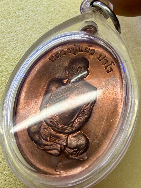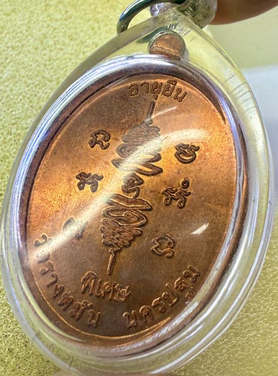 เหรียญอายุยืน หลวงปู่แผ้ว ปวโร วัดรางหมัน จ.นครปฐม เนื้อทองแดง รุ่น เพชรกลับยันต์สวน สวยคะ