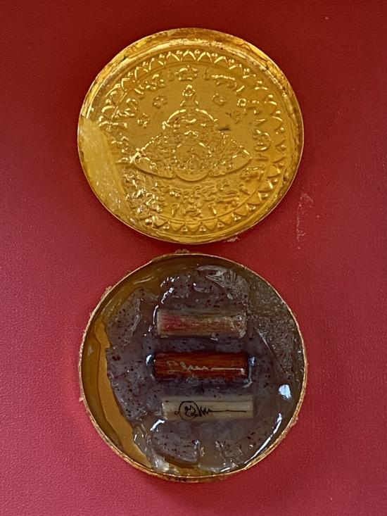 เนื้อ โลหะชุบทองลงยาสีดำขอบสีแดง ขนาด5ซม |