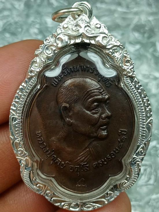 เหรียญเต่าไตรมาส หลวงปู่ดุลย์ วัดบูรพาราม เนื้อทองแดง ปี2521 จ.สุรินทร์ ตอกโค๊ต สภาพสวยผิวเดิมๆ พร้อมเลี่ยมเงินงานมืออย่างดี