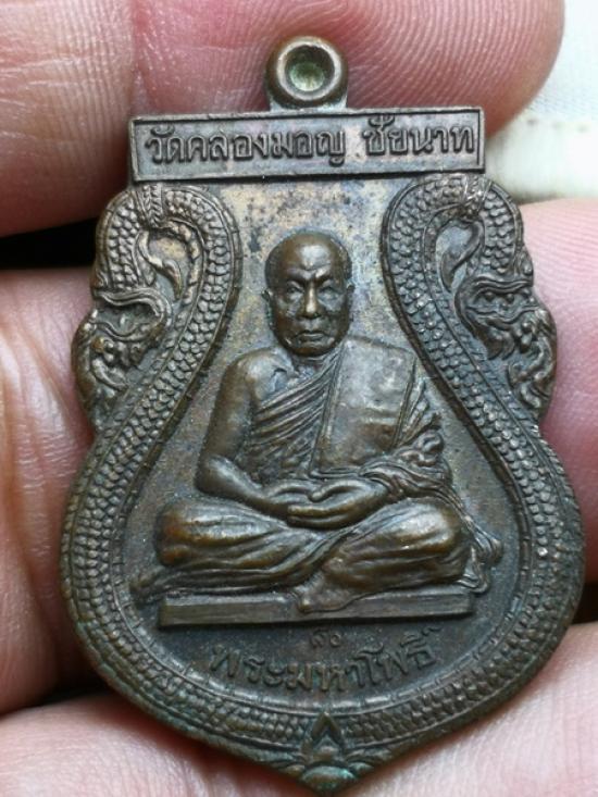 เหรียญเสมาหลวงพ่อมหาโพธิ์ เนื้อทองแดง วัดคลองมอญ จ.ชัยนาท ศิษย์ ช.ป. สร้างถวาย ปี 2542 |