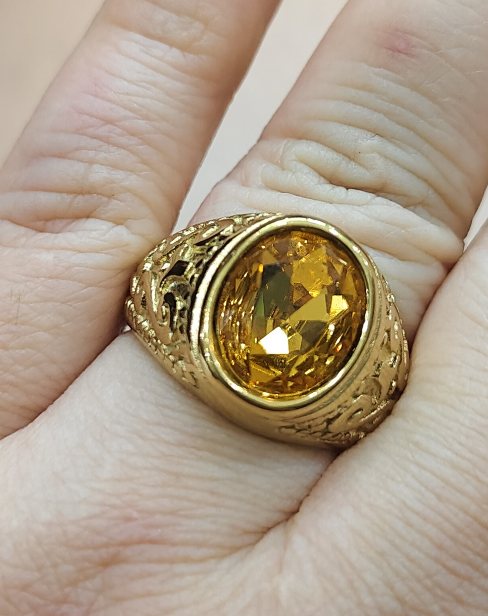 เทขาดทุน++เทปีใหม่++แหวนทองชุบยิงเลเซอร์ แหวนมหามงคลเสริมบารมี หัวพลอยบุษราคัม สวยมาก สวยๆ |