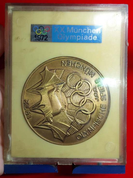 ชื่อพระเครื่อง ***วัดใจ***เหรียญที่ระลึกการแข่งขันกีฬาโอลิมปิกที่มิวนิก เยรมันนี ปี 1972 กล่องเดิม