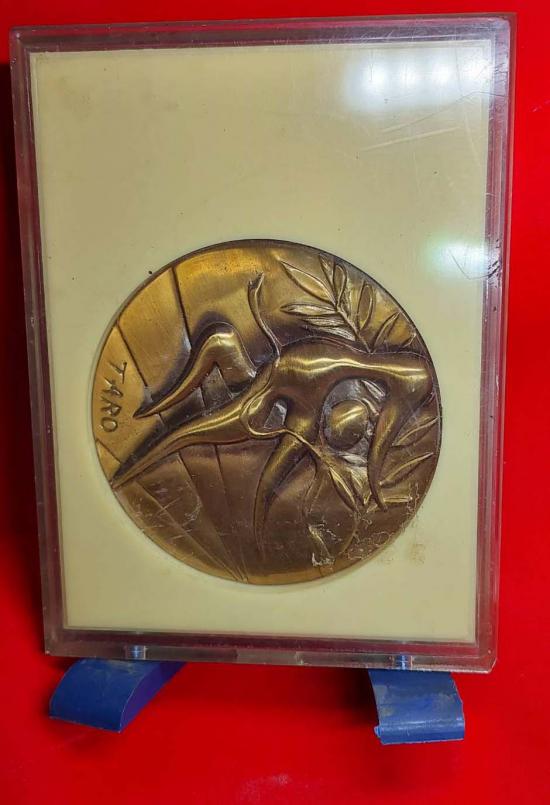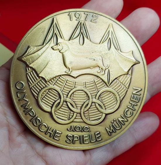 รายละเอียด เหรียญที่ระลึกการแข่งขันกีฬาโอลิมปิกที่มิวนิก เยรมันนี ปี 1972 อายุ 53 ปี เนื้อบรอนซ์ (Bronze) เป็นเหรียญที่ระลึกที่ออกแบบโดยศิลปินชื่อดังชาวญี่ปุ่น ทาโร โอคาโมโตะ (Taro Okamoto)