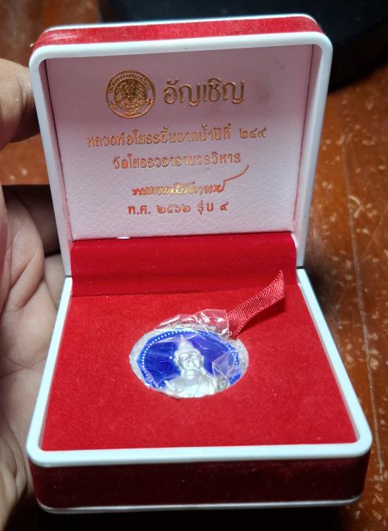 ## เหรียญหลวงพ่อโสธร รุ่น9 อัญเชิญขึ้นจากน้ำ 249 เนื้อเงินลงยาน้ำเงิน วัดโสธรฯ จ.ฉะเชิงเทรา ปี 2562 น้ำหนักเหรียญ 10.58 กรัม เคาะเดียว