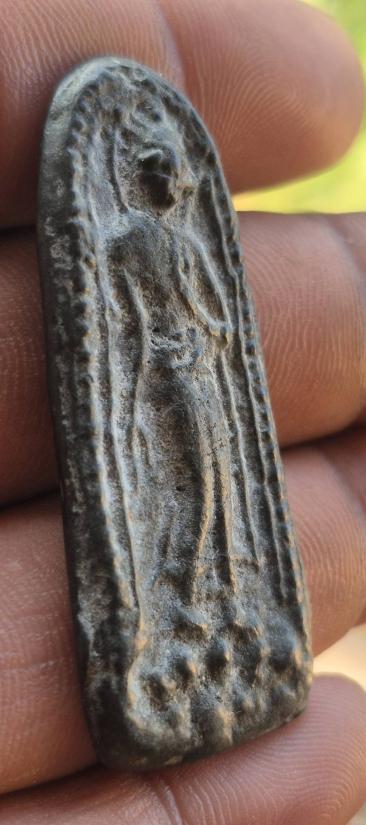 พระลีลา สุพรรณหลังยันต์ เนื้อชินเขียว (หน้าตั๊กแตน) |